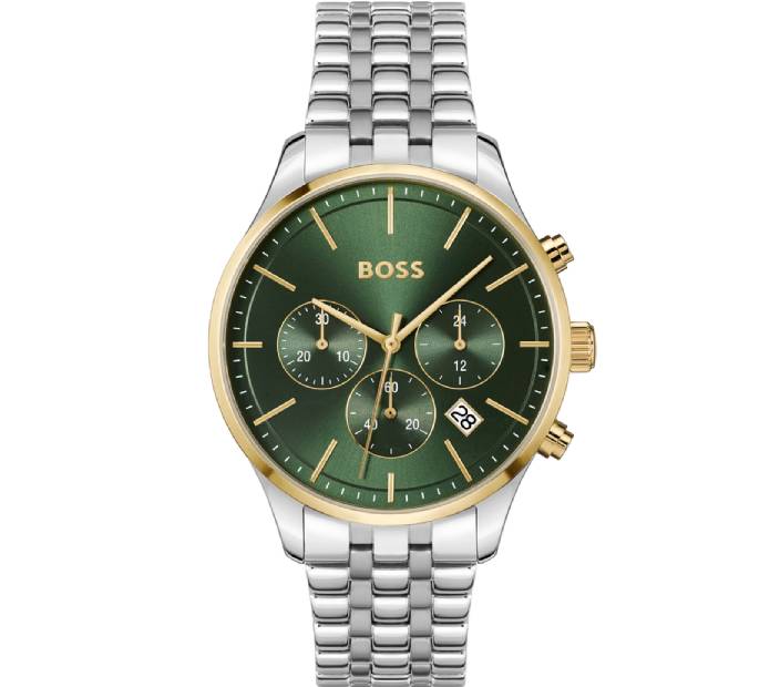 Ανδρικό ρολόι Boss, από ανοξείδωτο ατσάλι. Χρονογράφος με πράσινο καντράν.
