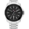 Ανδρικό ρολόι Tommy Hilfiger  από ανοξείδωτο ατσάλι.  Μπρασελέ  με μαύρο καντράν. Αδιάβροχο στα 50m, ακατάλληλο για κολύμβηση και το μέγεθος της κάσας του είναι στα 46mm.