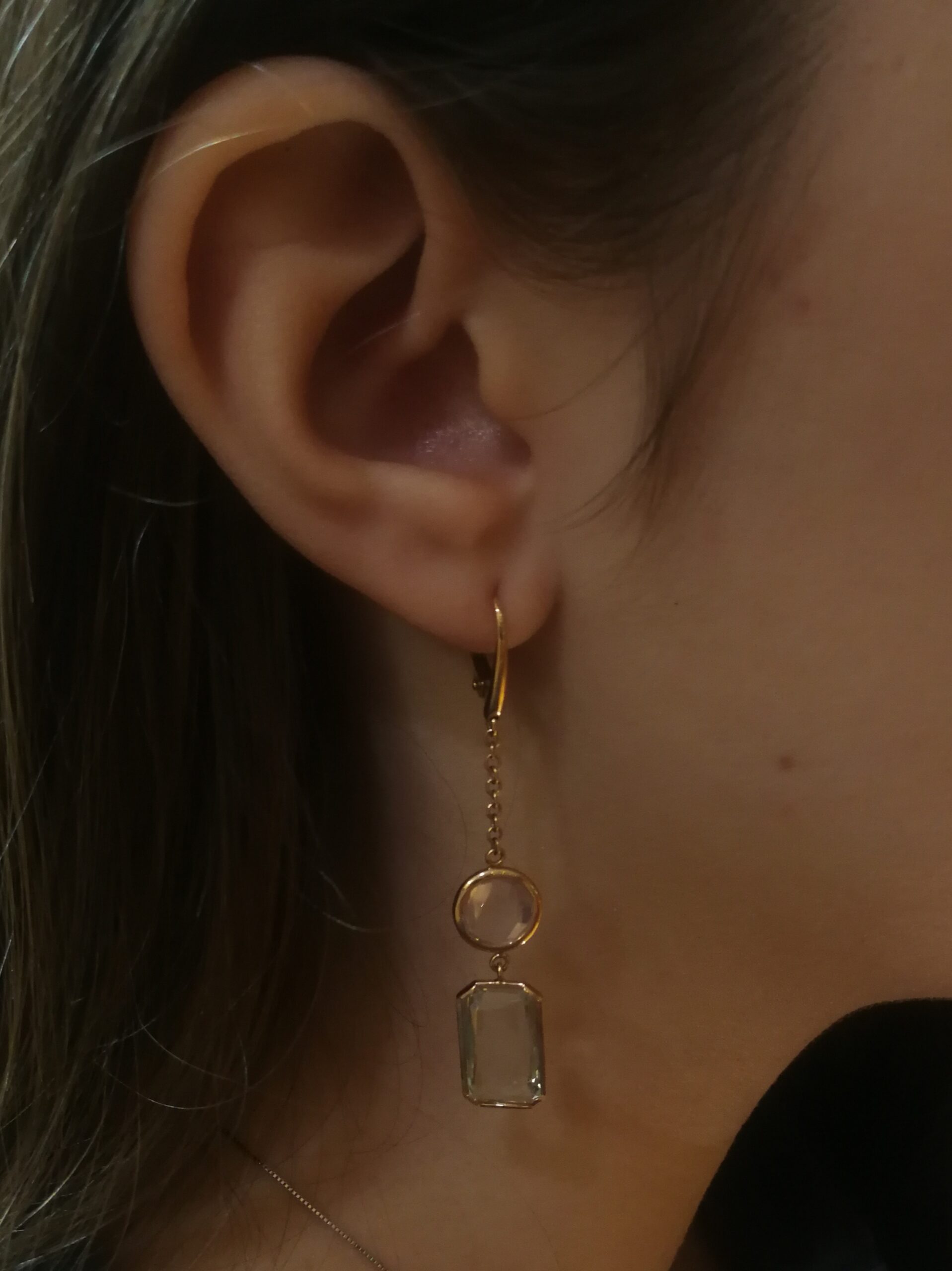 ΣΚΟΥΛΑΡΙΚΙΑ Κ18 ΜΕ ΣΤΡΟΓΓΥΛΗ ROZ QUARTZ ΚΑΙ ΚΑΡΕ PERIDOT ΠΕΤΡΕΣ.